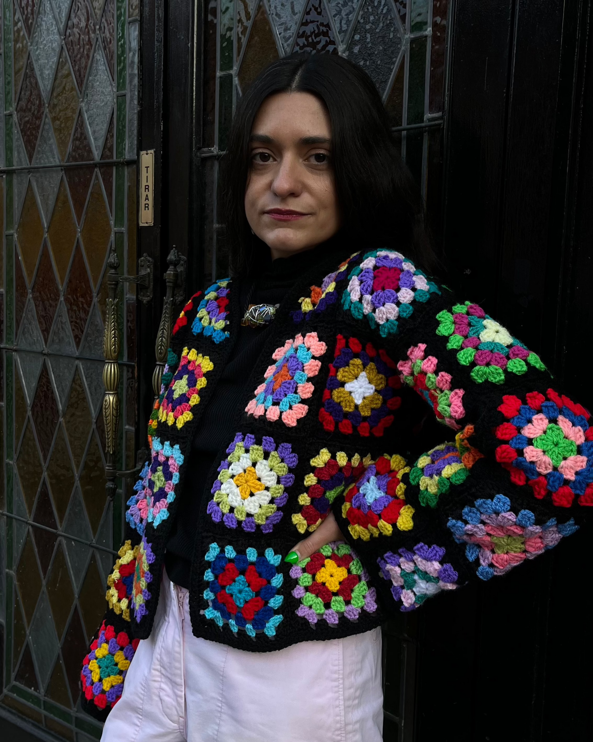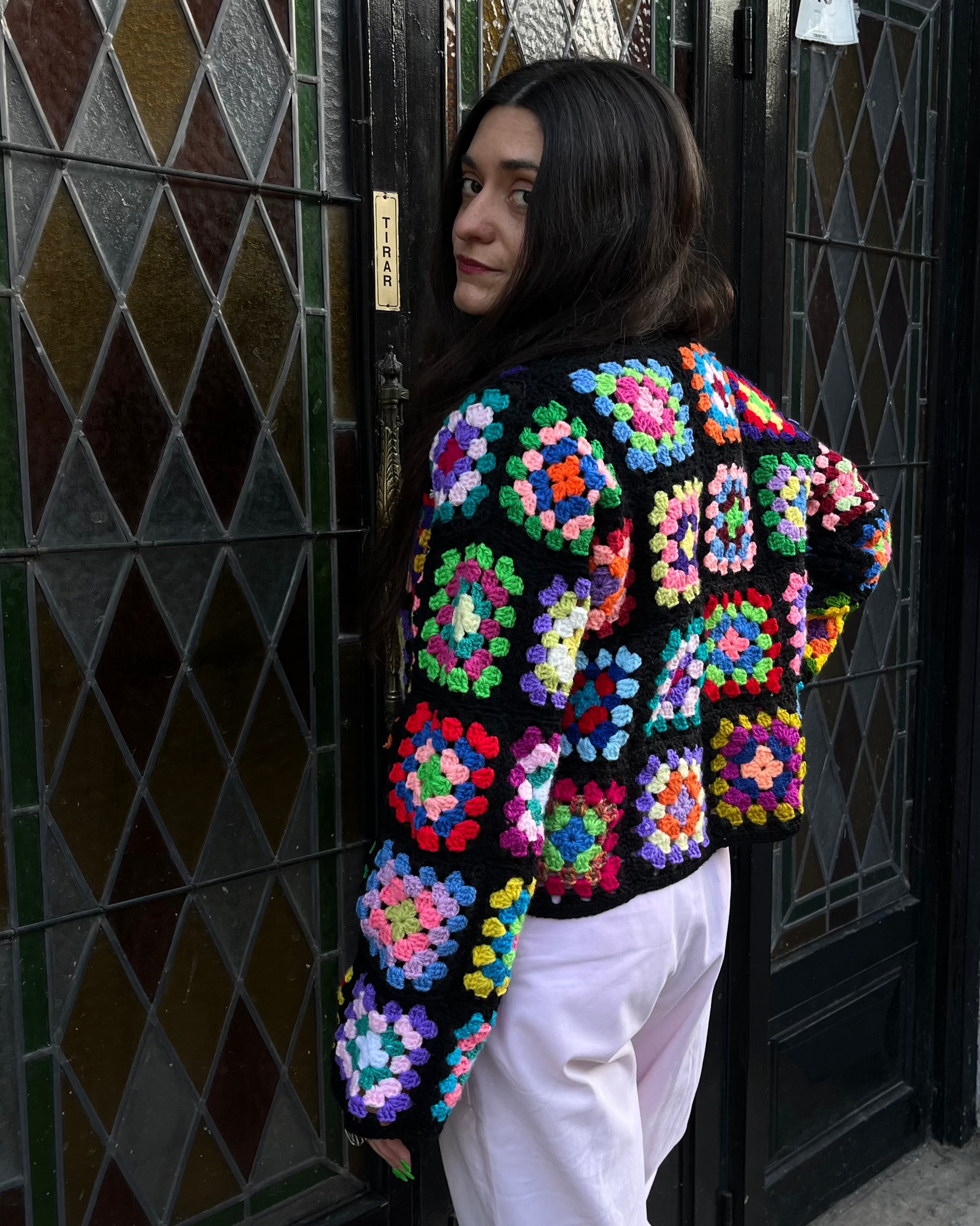 Con mangas largas y un acabado ligero, es perfecto para darle un toque artesanal y lleno de personalidad a cualquier look.