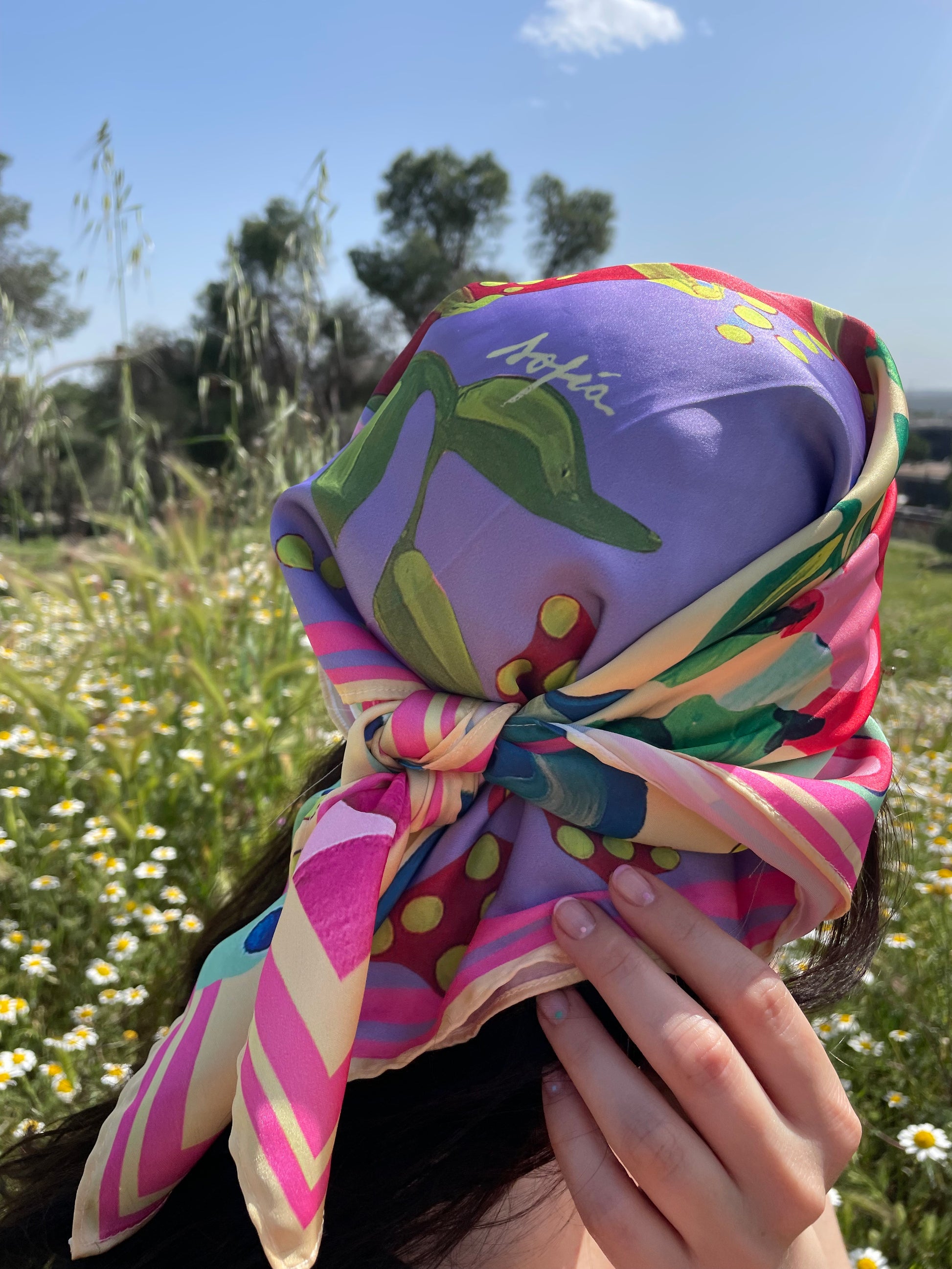 Pañuelo cuadrado 100% poliéster, sublimado a una cara.
